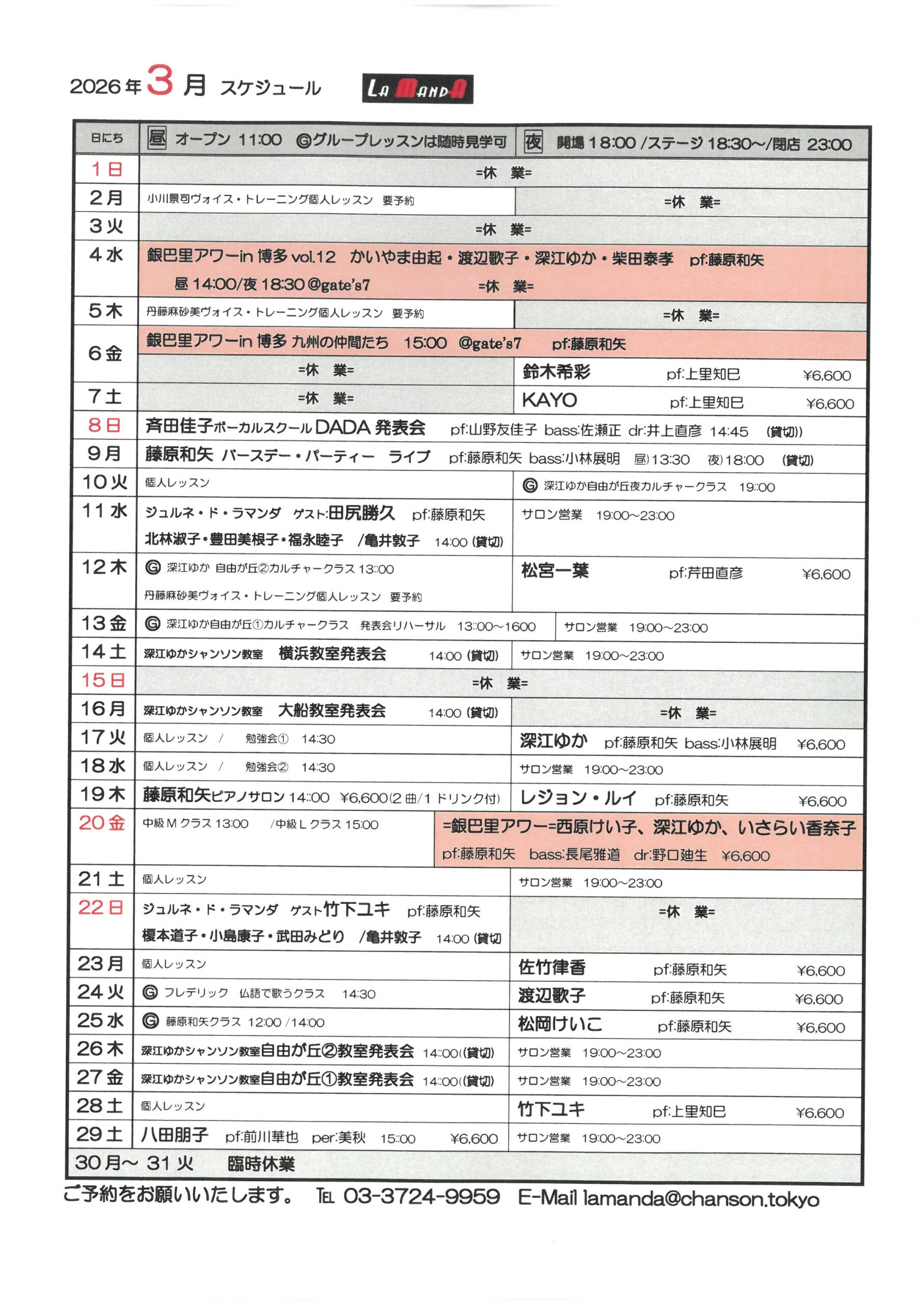 FAX.03-3724-9967E-MAIL lamanda@chanson.tokyo